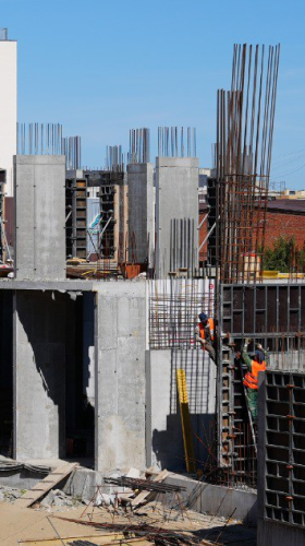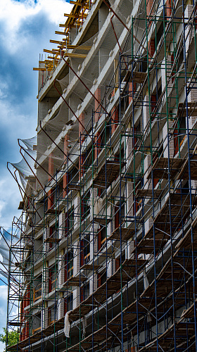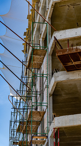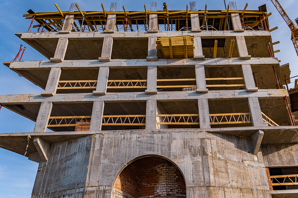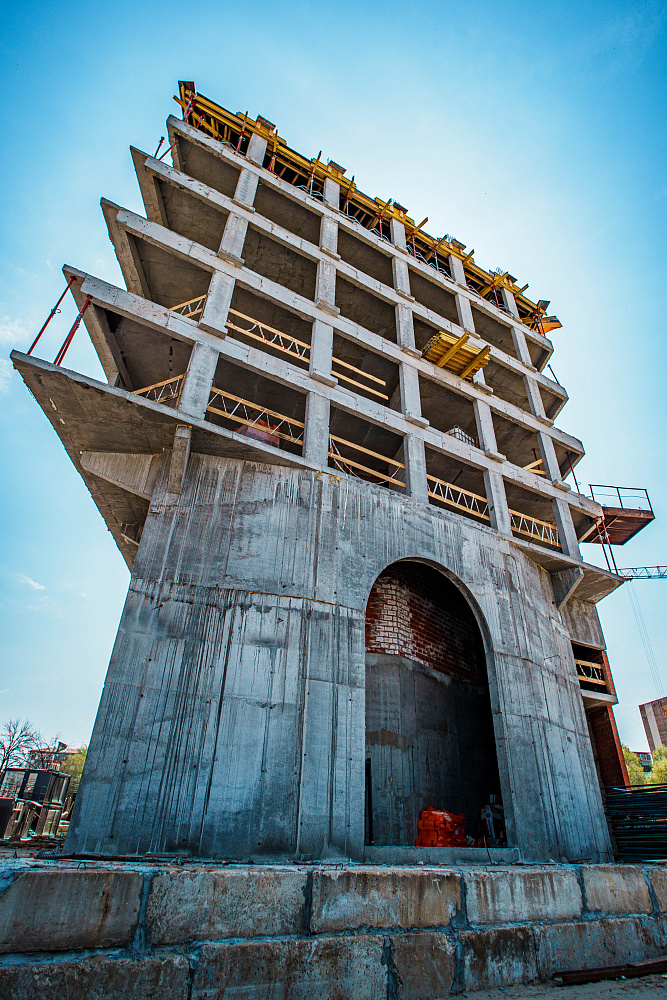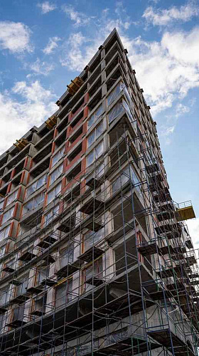 Главный дом, протянувшийся вдоль улицы Фирсова и площади Городов-Побратимов, поражает разнообразием секций переменной этажности от 8 до 13 этажей, каждая из которых обладает своим уникальным стильным фасадом и характером.